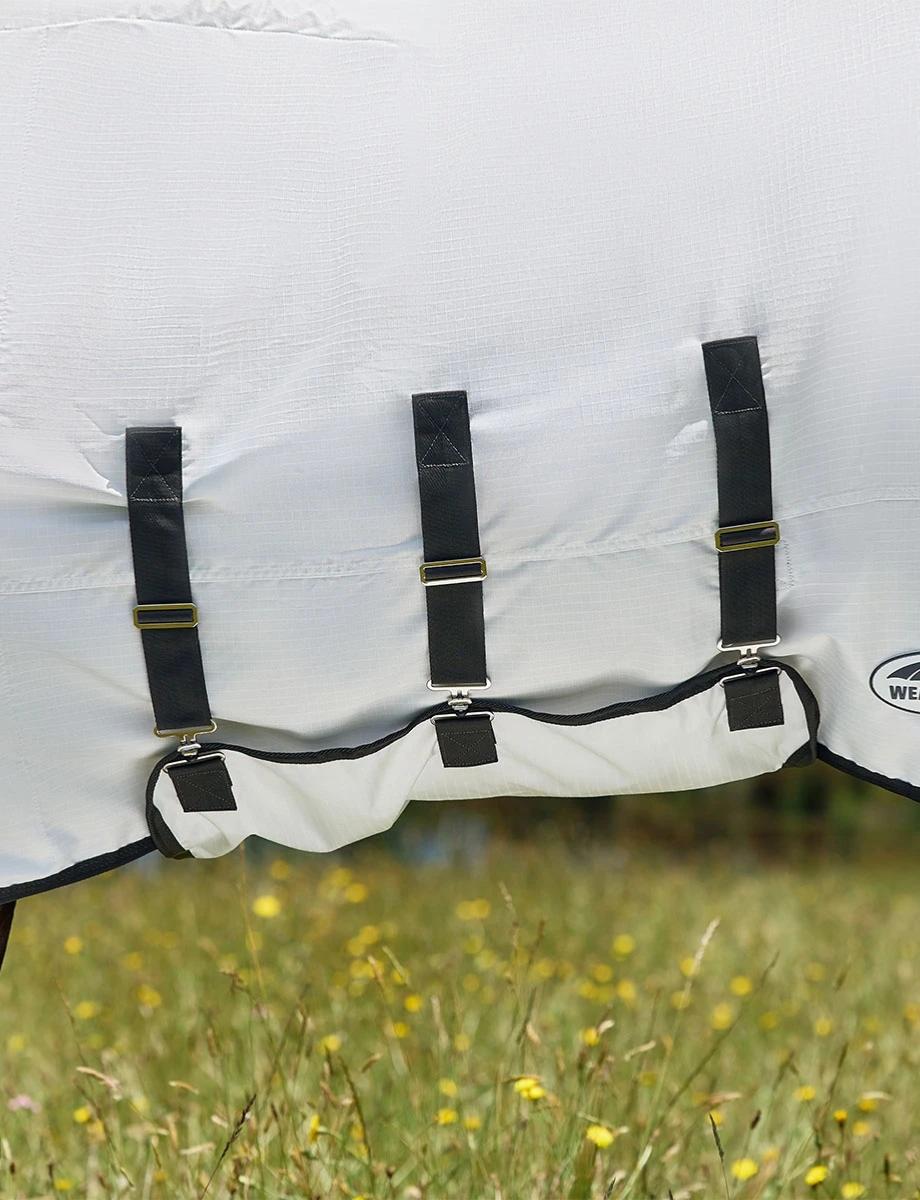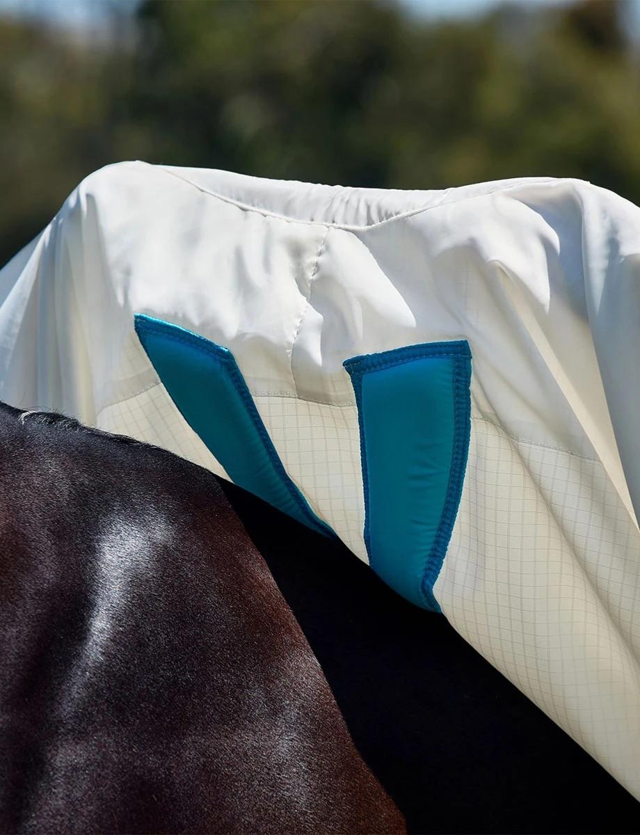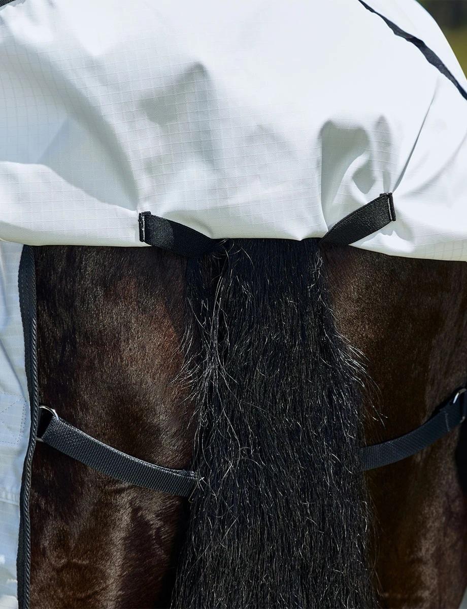 L'extérieur ripstop 600 deniers, résistant mais respirant, aide à résister aux déchirures, tandis que la doublure lisse 210T réduit les frottements. Et avec plus de 95 % de protection UV intégrée, elle offre la protection supérieure dont votre cheval a besoin, saison après saison.