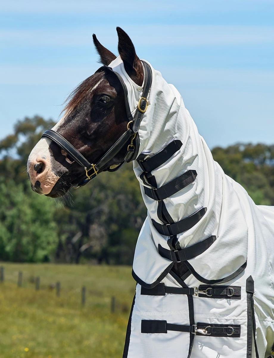 • Confortable et sécurisé : le panneau extensible allant du front aux oreilles garantit que la couverture reste bien en place au niveau du cou, tandis qu'un cordon réglable au niveau de la queue offre une sécurité supplémentaire.