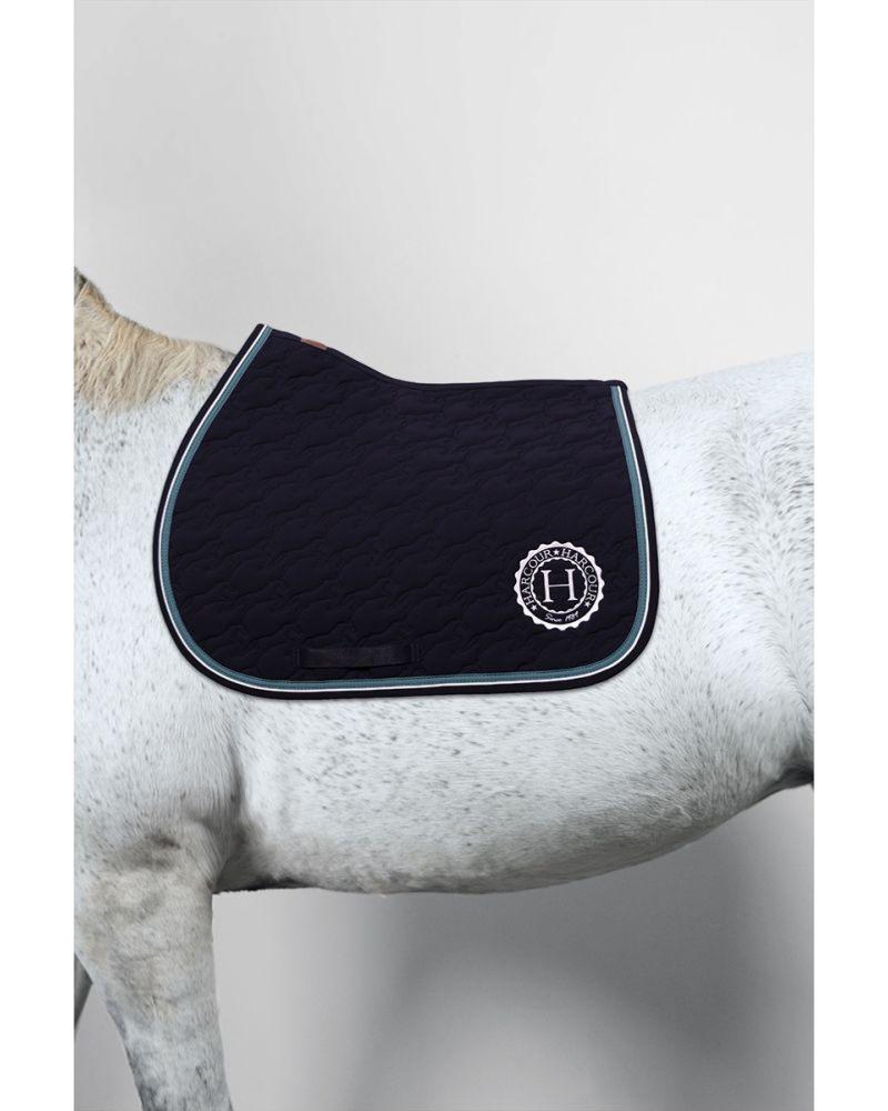 Surpiqûres en forme de cheval qui saute et joli logo Harcour brodé sur le côté gauche