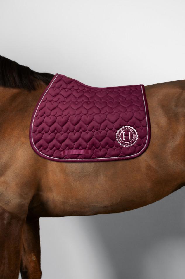 Tapis tissus velouté bordeaux é avec surpiqures coeurs.